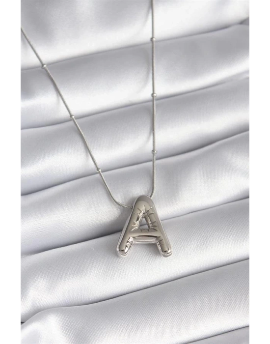 316L Çelik Gümüş Renk Bubble "A" Harf Model Kadın Kolye