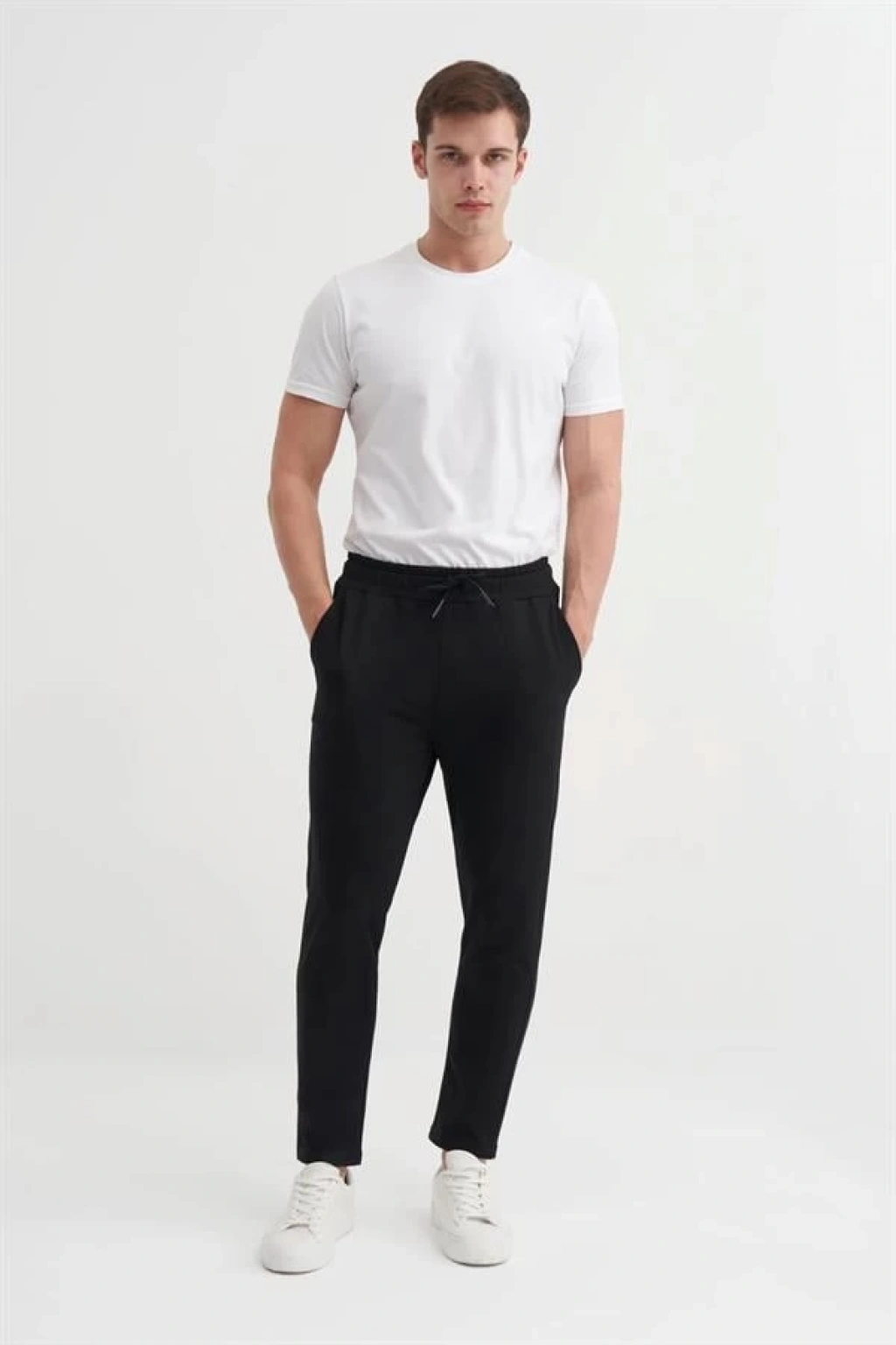 8017 2 İplik Slim Fit Erkek Eşofman Altı Siyah