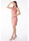 Kadın tül detaylı midi boy yırtmaçlı elbise