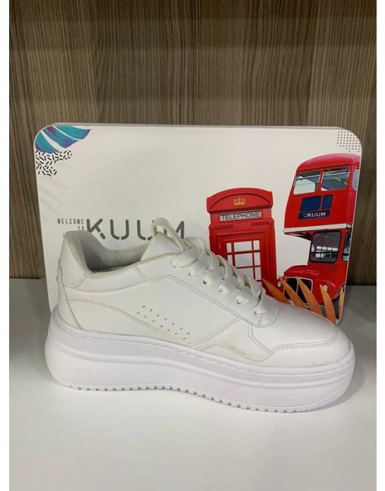 KB-X155 Kuback Beyaz Cilt Detaylı Beyaz Yüksek Taban Günlük Spor Ayakkabı