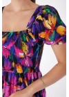 Kadın Fuşya Gipeli Kısa Kollu Elbise