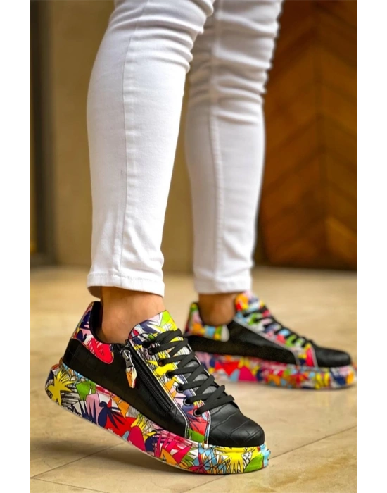 KB-X8 Kuback Siyah Sarı Cilt Yüksek Taban Günlük Spor Ayakkabı