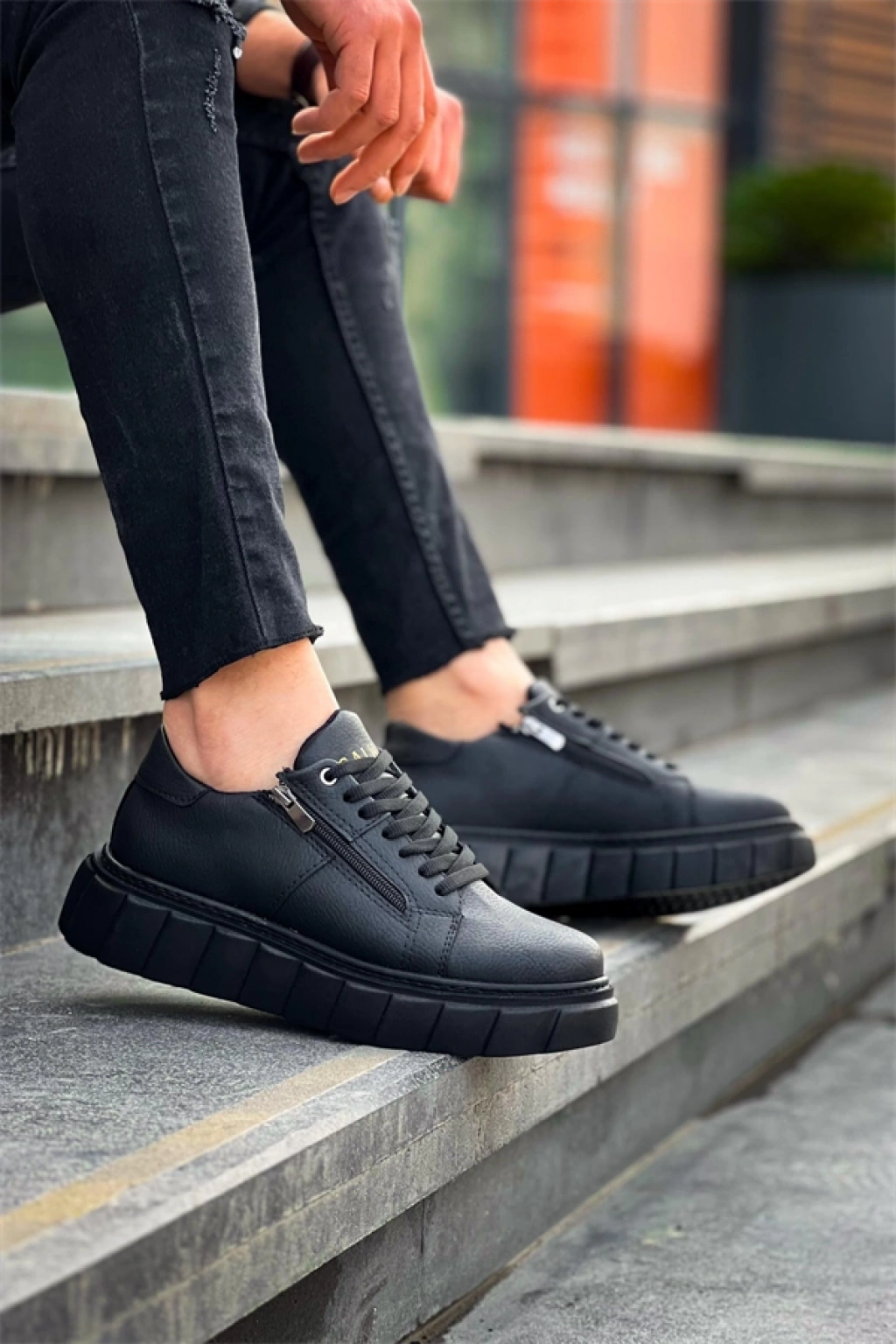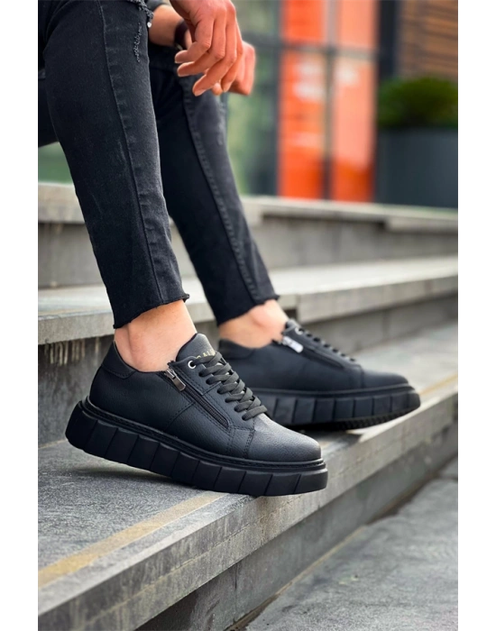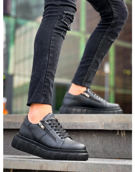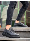 KB-X155 Kuback Siyah Cilt Detaylı Siyah Yüksek Taban Günlük Spor Ayakkabı