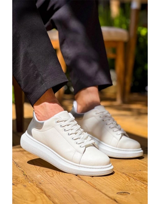 Kb-X500 Kuback Beyaz Gümüş Yüksek Taban Bağcıklı Günlük Erkek Ayakkabı