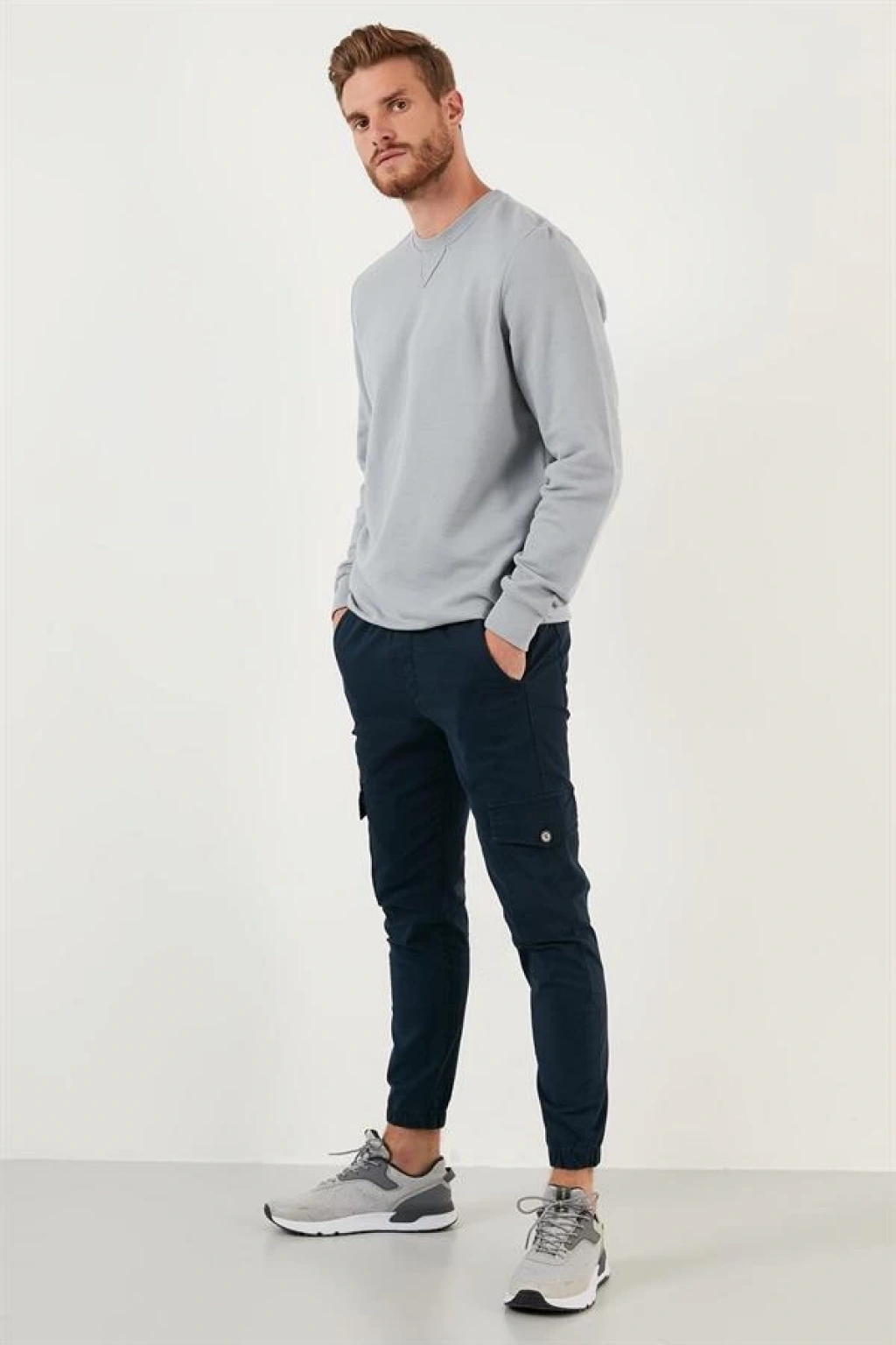Yarım Fermuar Apaş Yaka Waffle Desen Erkek Sweatshirt