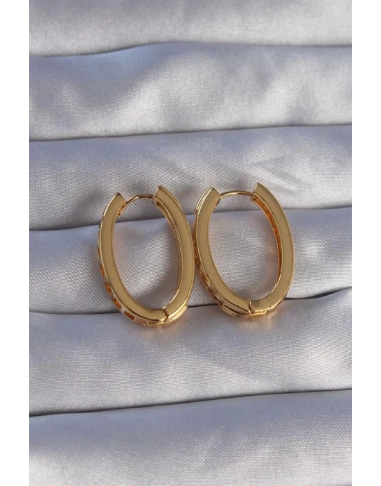Pirinç Gold Renk Zirkon Taşlı Oval Model Küpe