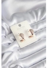 Pirinç Gold Renk Pembe Mineli İncili Çiçek İşlemli Portre Model Kadın Küpe